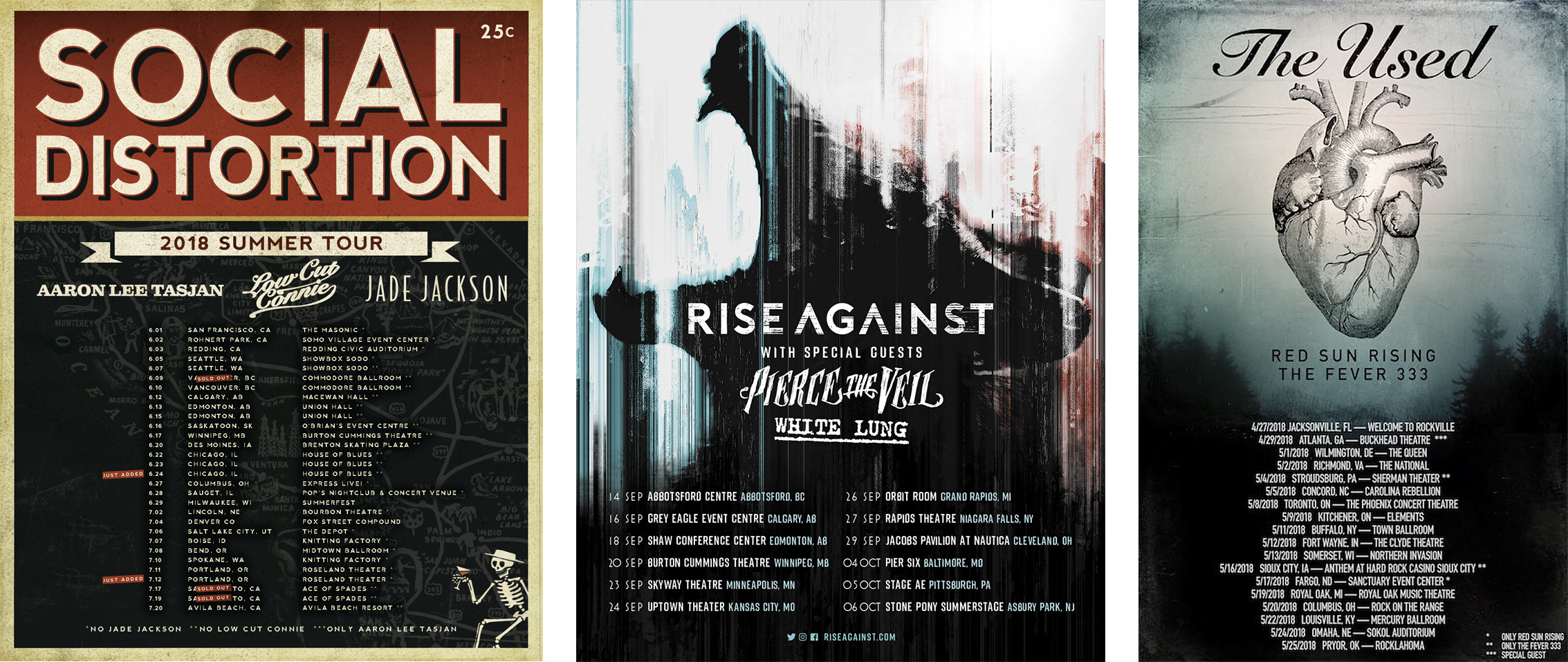 Tour-artwork is some of the most quintessentialy 'cool' pieces of the touring puzzle. It's vital that the artwork is engaging, informative, easy-to read PLUS it has to represent the artists on the bill. That's why so many people collect tour posters — they're just so damn cool. Some tour admats even become famous on their own. I could talk all day about this, but I won't do that to you.